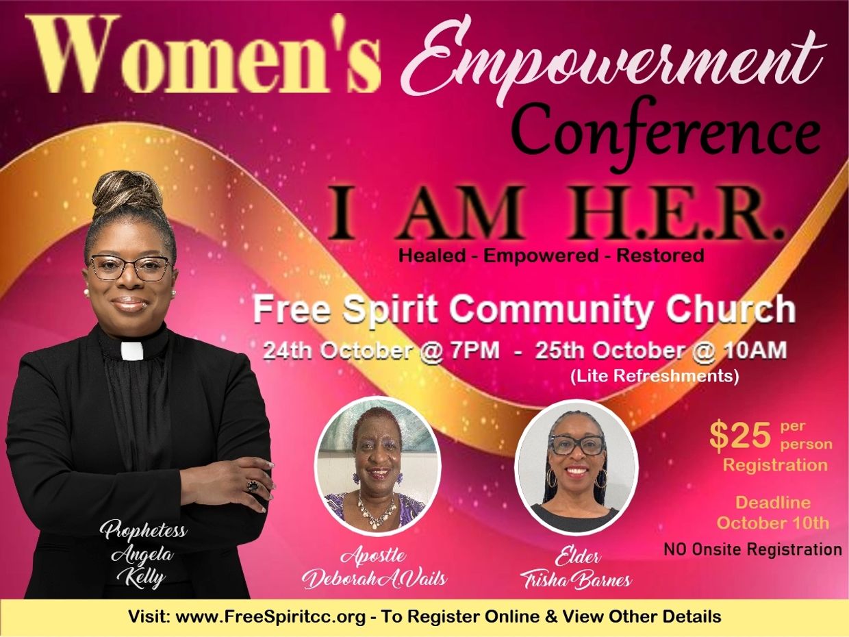 Disclaimer: Free Spirit Community Church, Inc. own all rights to Women's Empowerment "I AM H.E.R." Conference and is authorized to make changes at discretion.